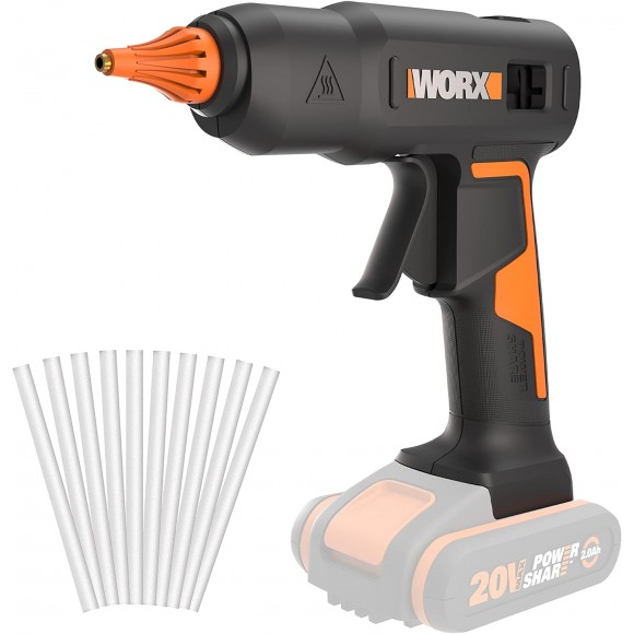 Клеевой аккумуляторный пистолет WORX WX045.9 предназначен для склеивания между собой различных материалов. Для работы потребуются клеевые стержни диаметром 11мм. Это очень популярный формат, поэтому с расходным материалом никогда не возникнет проблем. Рабочая температура составляет 200 градусов, разогрев пистолета до требуемой температуры осуществляется за 3 минуты. Питание клевого пистолета осуществляется от аккумулятора WORX POWER SHARE 20В. Эти аккумуляторы взаимозаменяемы с любым другим инструментом WORX 20В, а также садовой техникой WORX.