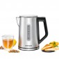 Rommelsbacher WK 3000 - стильный чайник с корпусом из нержавеющей стали объемом 1,7 литра идеально сочетает мощность и функциональность. С возможностью выбора температуры от 45°C до 100°C (6 ступеней), он быстро нагревает воду благодаря мощности в 3000 Вт. Двойной индикатор уровня воды и управление кнопками на ручке делают использование удобным, а светодиодный дисплей добавляет современный штрих. Функция поддержания тепла в течение 30 минут и защита от выкипания и перегрева обеспечивают безопасность и комфорт в использовании.